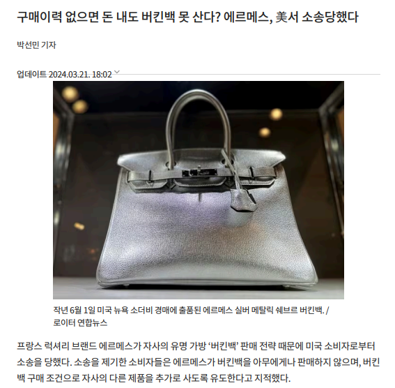 에르메스 가방은 돈만 있다고 살 수 없습니다.