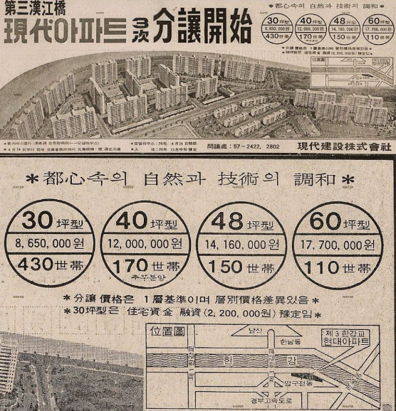 과거 1976년 당시 압구정 현대아파트의 분양가는